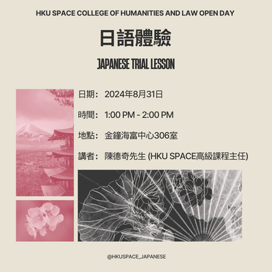 Mr TK Tan has extensive experience in teaching Japanese language and culture. He is in charge of part-time Asian language programmes at the College of Humanities and Law, HKU SPACE.