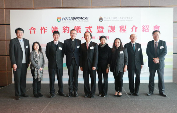 為慶祝這港澳教育合作的重要里程碑, HKU SPACE與聖公會澳門教育專業協會在2015年1月7日,假澳門觀光塔舉行「合作簽約儀式暨課程介紹會」。出席介紹會的嘉賓,除了HKU SPACE常務副院長陳永華教授、聖公會澳門教育專業協會管理委員會主席管浩鳴牧師及兩院校的一眾代表外,更邀請到ACCA香港分會教育及發展經理王珩女士、CIMA 市場及拓展經理馮美玉女士及AIA香港分會亞太區區域總監 彭子堅先生及行政總監袁耀坤先生出席。
