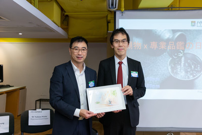 講座嘉賓合照及致送紀念品,左起︰香港大學專業進修學院金融商業學院署理總監楊仕名先生及日本駐香港總領事館副總領事廣田司先生